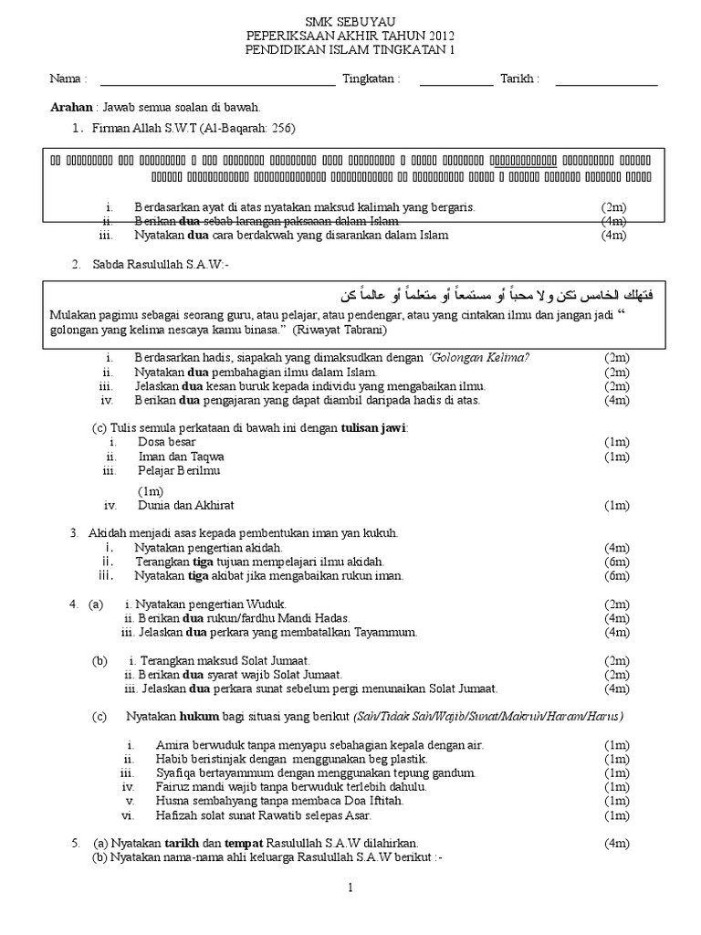 Soalan Pendidikan Islam Tahun 1 Ujian. Mula tahun 2014 ada satu atau dua soalan yang akan keluar di peringkat SPM yang berbentuk soalan HOTS. Semoga perkongsian bahan-bahan rujukan panduan bahan pembelajaran dan pengajaran contoh-contoh karangan sumber rujukan PT3 Pentaksiran Tingkatan 3 tingkatan 1 tingkatan 2.